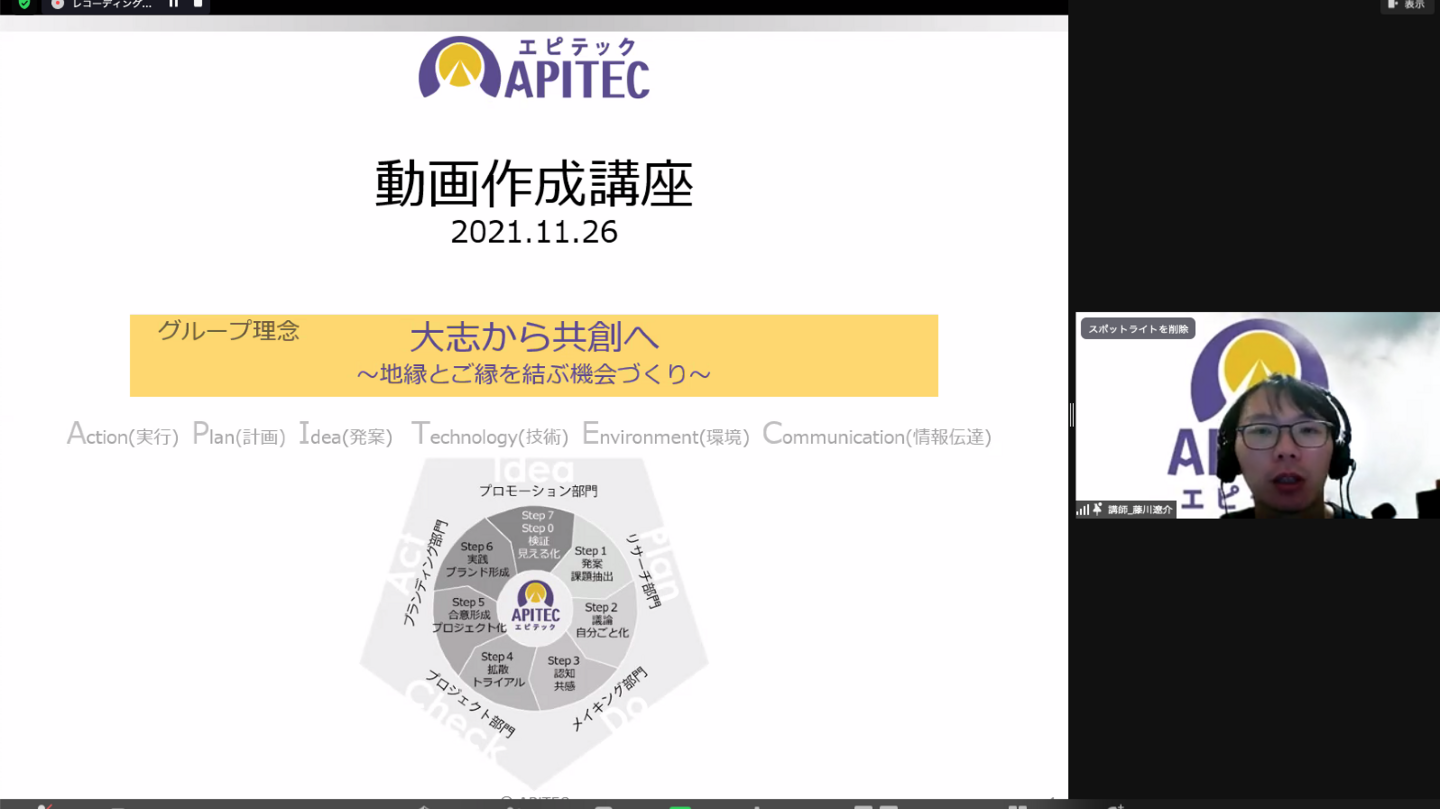 プレゼンテーションに向け、団体の魅力を効果的に伝えられるような動画作りを学び、作成した動画を広く様々な方に向けもらうことで、団体の広報や活動自体のブランドの底上げにもつながることを目的に開催しました。
